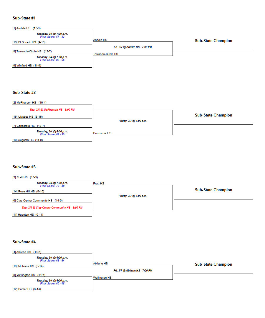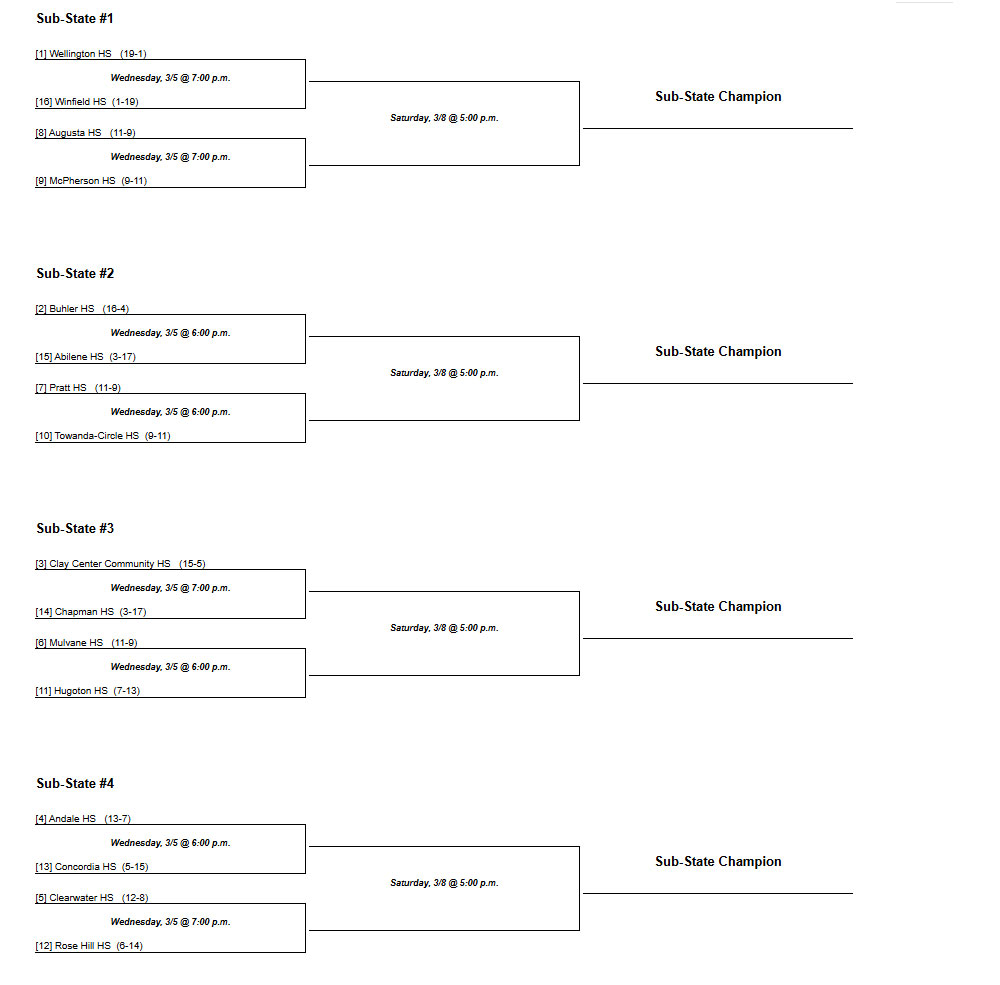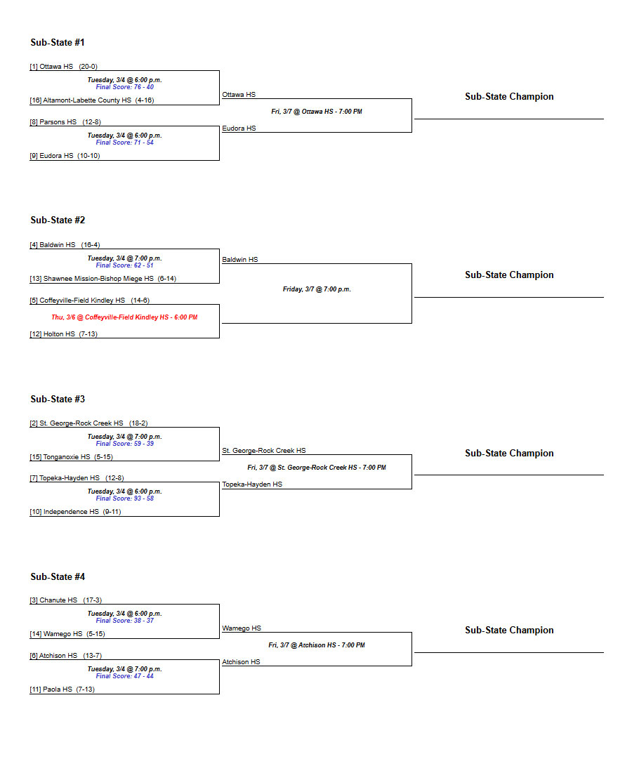 Below are the Kansas Classs 4A girls and boys substate brackets for 2025.
