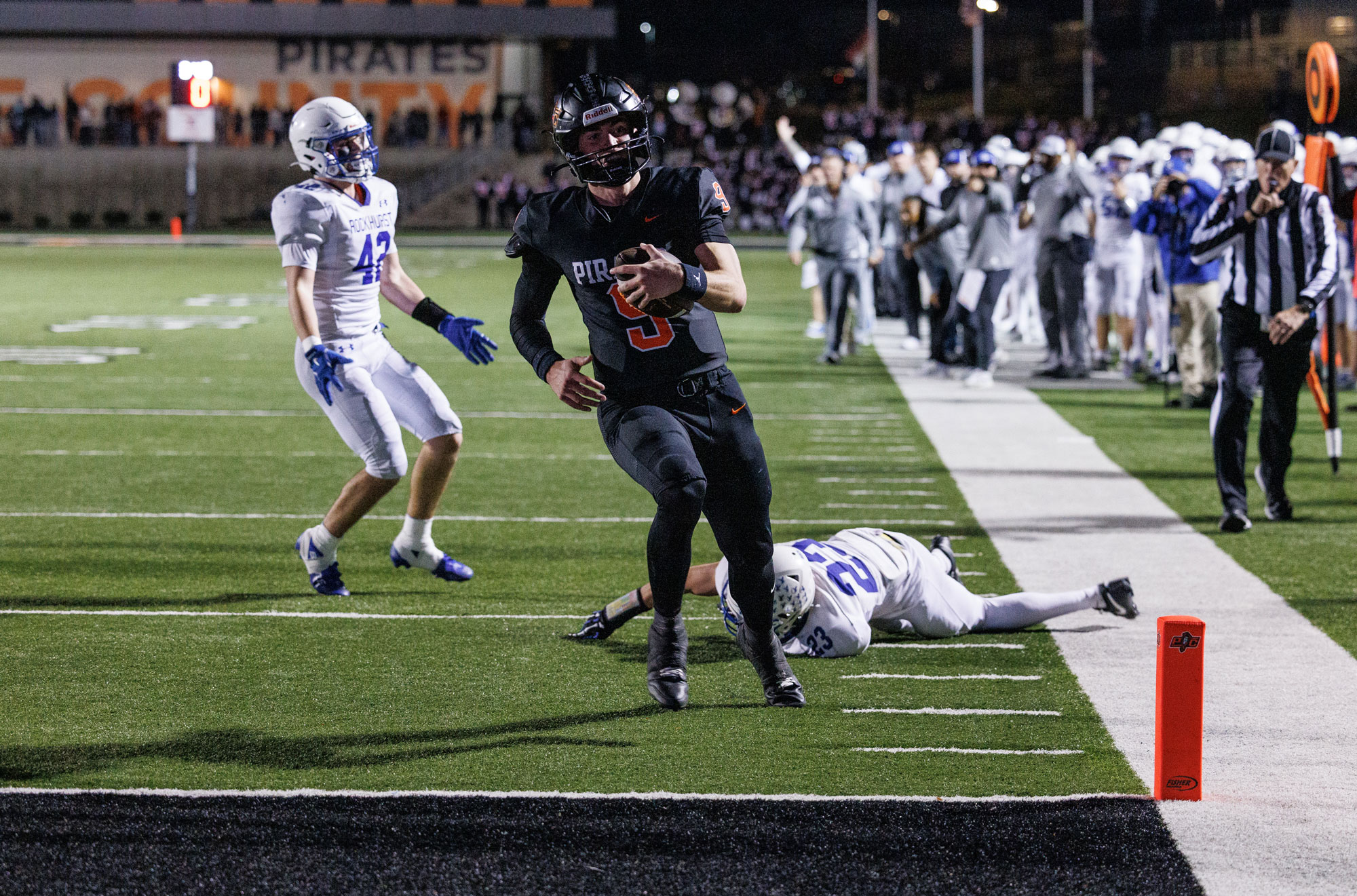 Marriott and the Pirates got warmed up with a 34-yard touchdown pass to Christopher with 3:24 left in the third quarter, followed by a stop, a 27-yard punt return by Braiden Stevens to the Rock 29, followed by a 14-yard touchdown pass to Kansas commit Jack Utz for a 13-12 lead with 2:13 left in the third period.