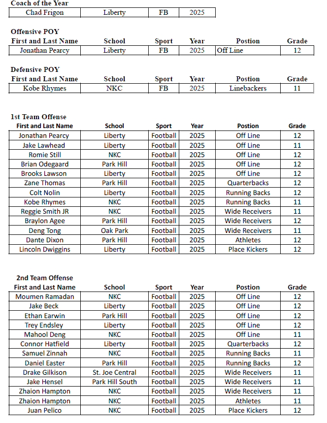 Tag(s): Home News Football Missouri Suburban Red Liberty NKC Oak Park Park Hill Park Hill South St. Joe Central